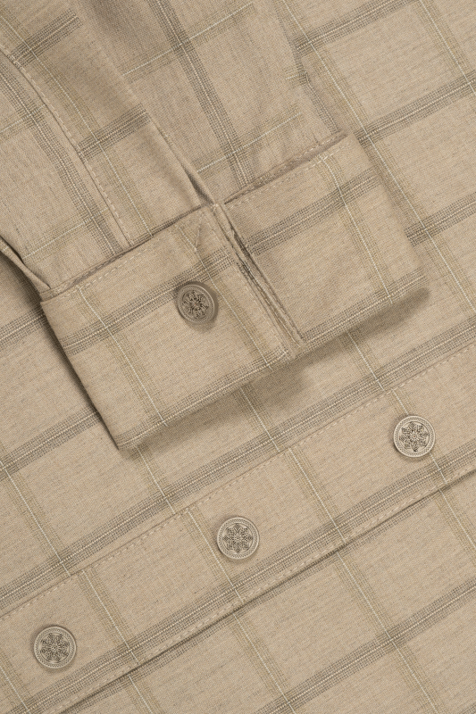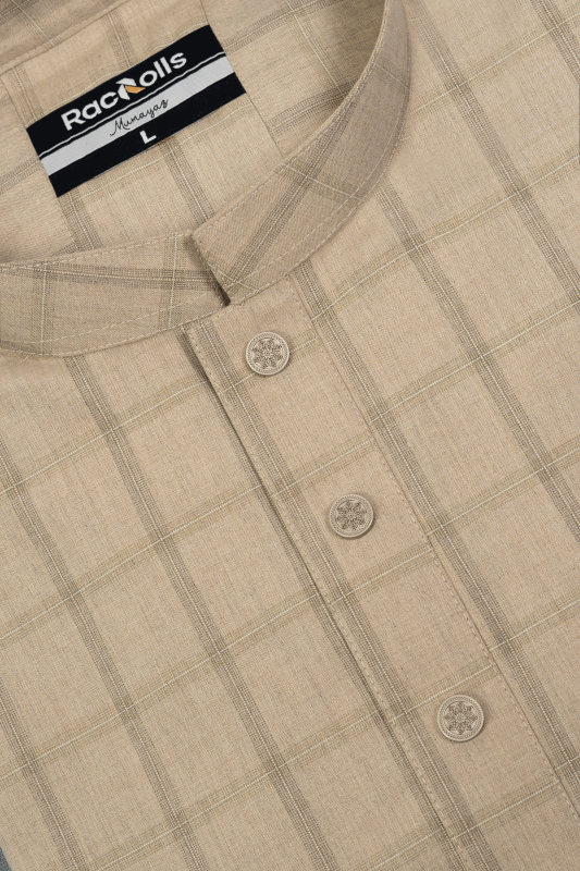 High-end beige check panjabi with superior fabric.